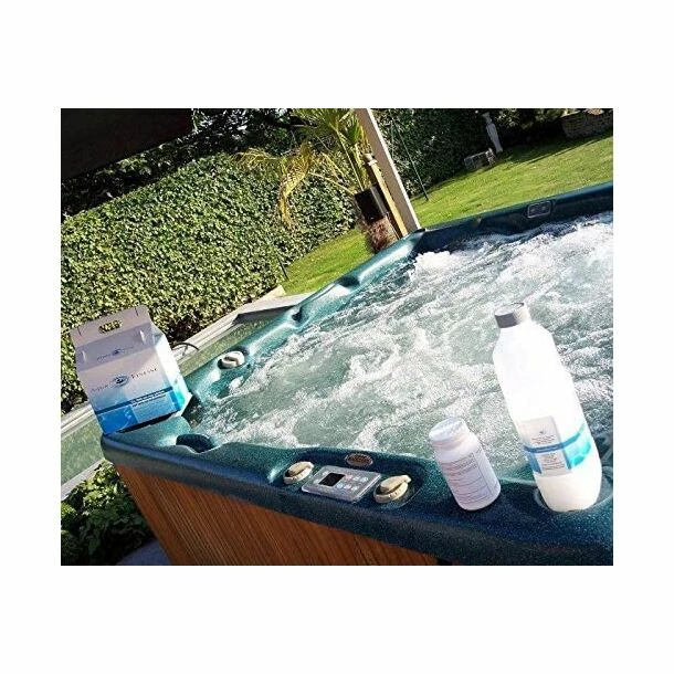 Met de AquaFinesse Spa en Hot Tub Box spendeer je slechts één minuut, één keer per week om het water van de spa in goede conditie te houden. Voeg wekelijks de voorgeschreven hoeveelheid AquaFinesse vloeistof toe en voeg chloortabletten toe. Verder heb je geen onderhoud aan je spawater en kan je met een gerust hart verder genieten van jouw hottub.