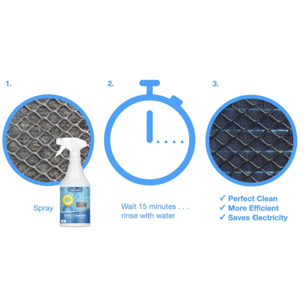 Met Grid Cleaner reinigingsmiddel voor warmtepompen en airconditioners gaat uw apparaat jaren langer mee. Met Aquatural Grid Cleaner is het schoonmaken en onderhoud van een warmtepomp een eenvoudige klus die maximaal 15 minuten tijd kost. Je hebt geen mechanische hulpmiddelen nodig, die de lamellen of andere onderdelen zouden kunnen beschadigen.