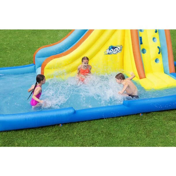 Kinderen kunnen zich samen met hun vriendjes uitleven in het prachtige Beachfront Bonanza Mega waterpark. Spetteren in het zwembad, klimmen langs de klimwand en racen over de glijbaan. En dat alles terwijl ze onder water genomen worden door het waterkanon aan de zijkant. Het waterpark wordt in enkele minuten opgeblazen door de meegeleverde blower. Vul het vervolgens met water en sluit de tuinslang aan op het waterpistool. De ingebouwde watersproeier sproeit met willekeurige tussenpozen om de glijbaan glad te houden en voor de veiligheid is de toren voorzien van netwanden.