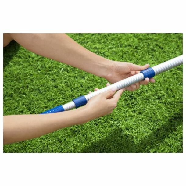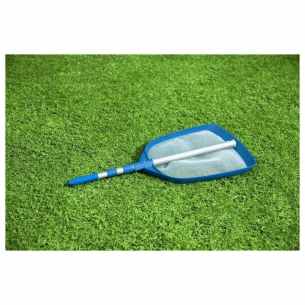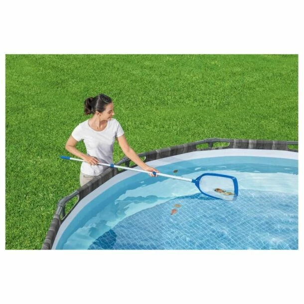 Bestway Flowclear AquaScoop Skimmerset voor het zwembad met een duurzaam net van gaas dat zichzelf repareert als er met een vinger over wordt gewreven. Met de schuine schep kan het vuil gemakkelijk worden verzameld van de moeilijk bereikbare bodem en uit de lastige hoeken.