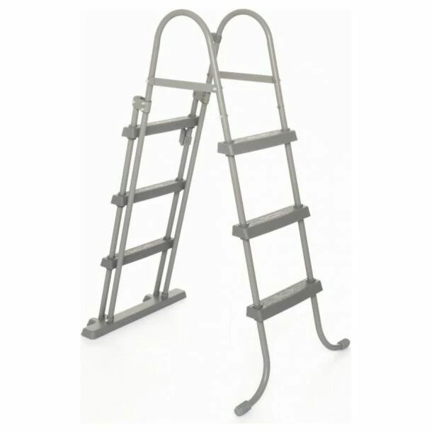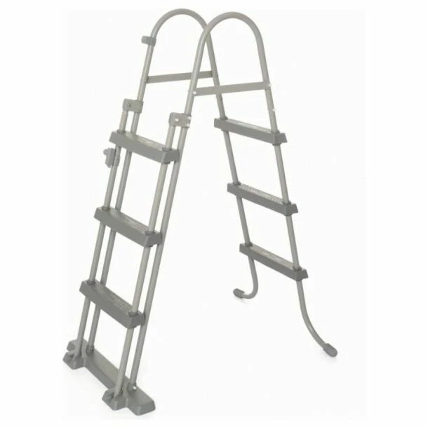 De treden aan de buitenkant van de ladder kunnen ingeklapt worden om te voorkomen dat de ladder door kinderen wordt gebruikt, zodat ongelukken gemakkelijk kunnen worden vermeden. De zwembadveiligheidsladder is geschikt voor bovengrondse zwembaden met een maximale hoogte van 107 cm. Het trapje is eenvoudig te monteren.