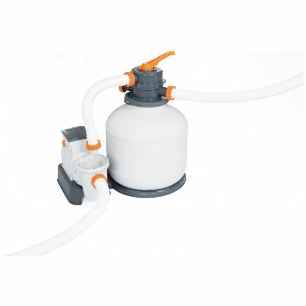 De zandfilterpomp is in staat is om onzuiverheden en waterdeeltjes vast te houden door het gebruik van zand en schoon en helder water perfect terug te voeren. De zandfilterpomp die wordt meegeleverd heeft een pompcapaciteit van 5.678 liter per uur. De geïntegreerde skimmer werkt met het filtersysteem om ongewenst vuil te verwijderen en het water schoon te houden.