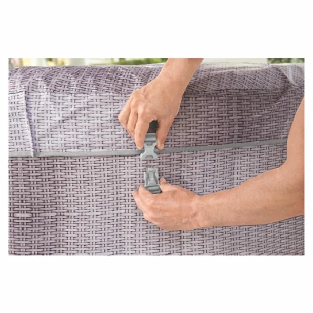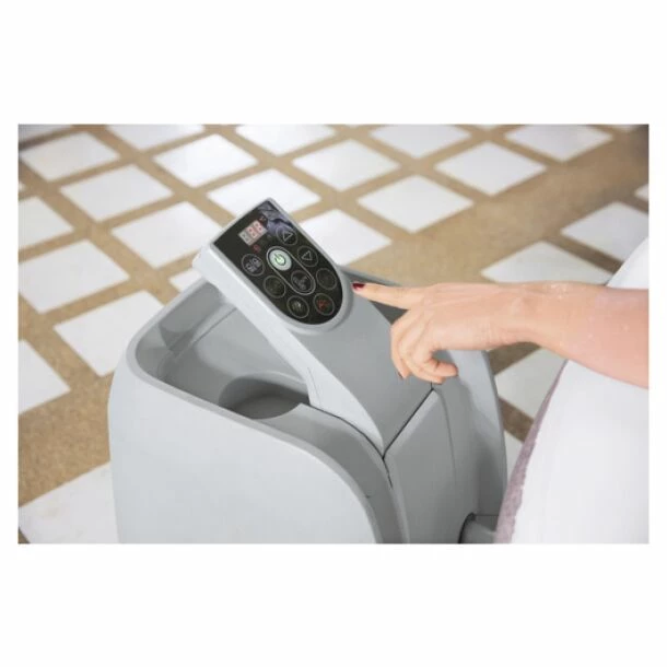 De pomp is praktisch en toegankelijk en wordt compleet geleverd met een digitaal bedieningspaneel en bekerhouders en is toegankelijk terwijl je in de spa zit. De pomp blaast niet alleen de opblaasbare spa op, maar start ook de verwarmings- en massagesystemen en kan het geïntegreerde filtersysteem activeren. Het filtersysteem heeft een capaciteit van 1.325 l/u en gebruikt .