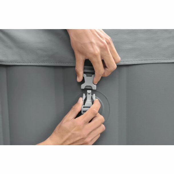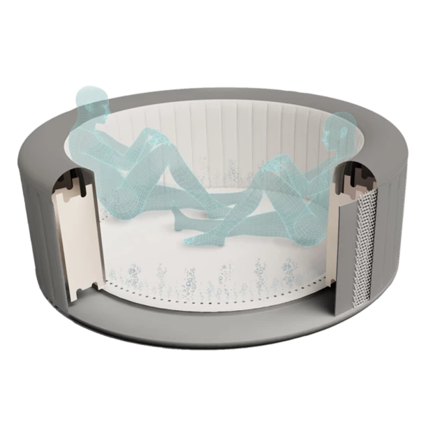 De wanden van het bubbelbad zijn gemaakt met DuraPlus. DuraPlus is een drielaags, stevig materiaal dat PVC combineert met polyester gaas voor superieure sterkte, duurzaamheid en lekbestendigheid en biedt bescherming tegen blootstelling aan Uv-stralen.