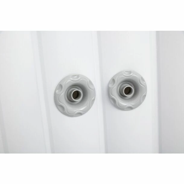 De wanden van de spa zijn gemaakt met DuraPlus. DuraPlus is een drielaags, stevig materiaal dat PVC combineert met polyester gaas voor superieure sterkte, duurzaamheid en lekbestendigheid en biedt bescherming tegen blootstelling aan Uv-stralen.