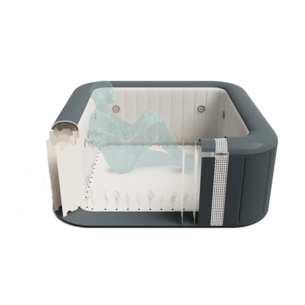 Met 8 hydrojets, 140 airjets en een maximale watertemperatuur van 40°C biedt deze vierkante spa een geweldige massage-ervaring voor maximaal 6 personen.