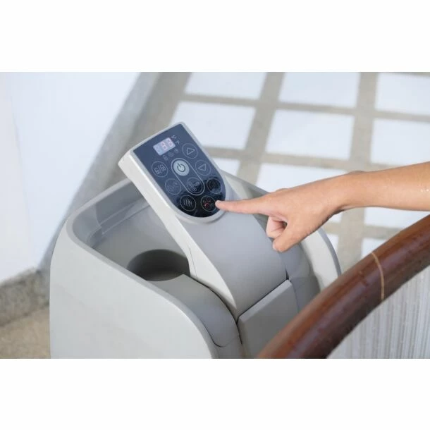 De Bestway Lay-Z-Spa pomp is praktisch en toegankelijk, compleet met een digitaal bedieningspaneel en bekerhouders en is toegankelijk terwijl je in de jacuzzi zit. De pomp blaast niet alleen de spa op, maar start ook de verwarmings- en massagesystemen en kan het geïntegreerde filtersysteem activeren. Het filtersysteem heeft een capaciteit van 1.325 l/u en gebruikt .