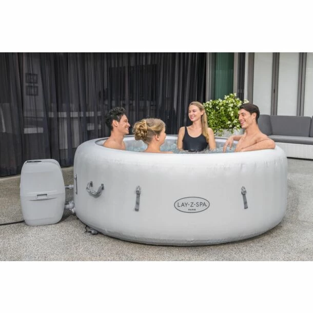 Geniet en ontspan in je eigen Bestway Lay-Z-Spa Paris Airjet met een LED lichtsysteem bestaande uit meerdere kleuren. Met 4 tot 6 personen is de Lay-Z-Spa Paris ideaal voor ontspannen met familie, feesten met vrienden of een romantische avond met je geliefde.