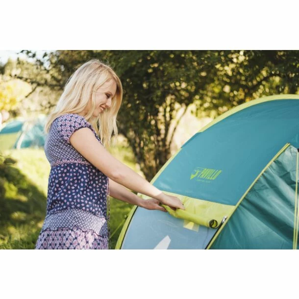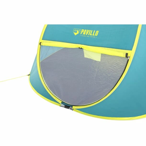 De Pavillo Cool Mount 4 is een pop-up tent, dus het is een kwestie van uitpakken, de tent opgooien en hij staat. De tent is een ideale vierpersoons en lichtgewicht tent voor als je één of twee nachtjes op een camping of het festivalterrein staat en daarna weer verder trekt. De deur en 2 zijramen kun je afsluiten met anti-insectengaas. De tent is waterdicht tegen lichte regen (waterkolom: 2.000 mm) en gemaakt van brandvertragend materiaal en uitgerust met een handig binnenvak voor het opbergen van persoonlijke bezittingen. De tent wordt geleverd met een handige draagtas en 8 haringen.