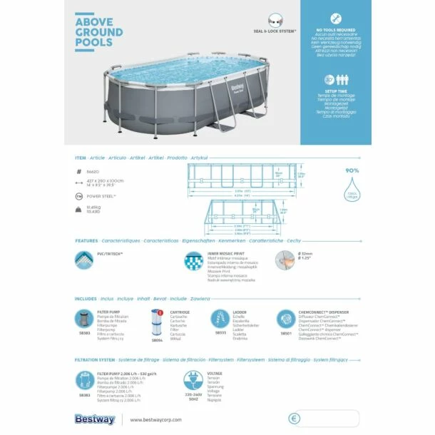 • Afmetingen zwembad: 427 x 250 x 100 cm