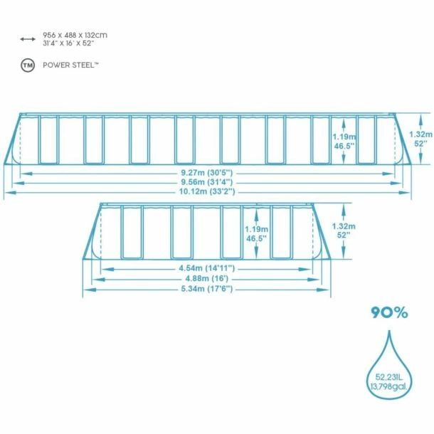 • Afmetingen zwembad: 956 x 488 x 132 cm