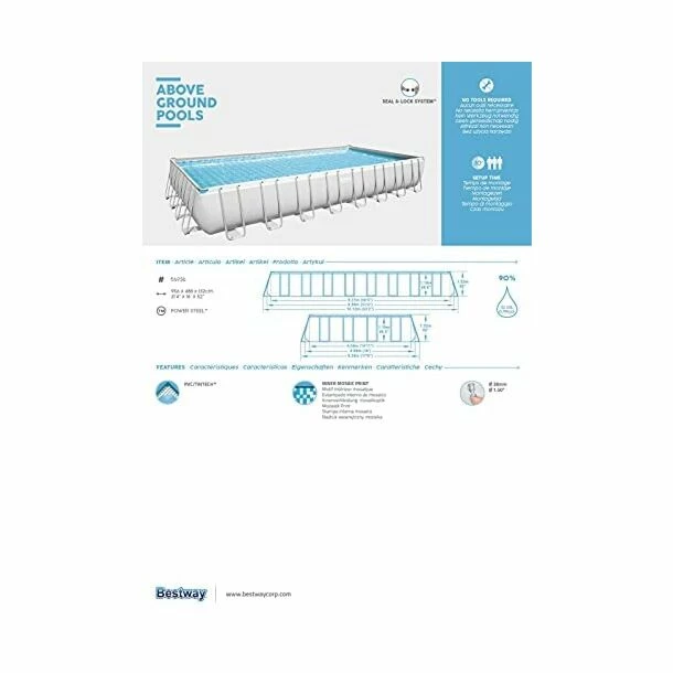 Dit Bestway Power Steel zwembad biedt het grootste oppervlak voor grote groepen en gezinnen die allemaal samen willen genieten. Het zwembad is eenvoudig op te zetten en heeft corrosiebestendige metalen frames.