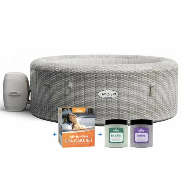Met de opblaasbare Bestway Lay-Z-Spa Honolulu Airjet krijg je gegarandeerd een voortreffelijke spa-luxe, rust en comfort in je eigen tuin of op het terras. Met deze PREMIUM deal hoef je zelfs niet meer na te denken wat je er verder bij nodig hebt, want alles wat je nodig hebt om de spa te kunnen gebruiken wordt meegeleverd in de voor opblaasbare jacuzzi’s en spa’s.