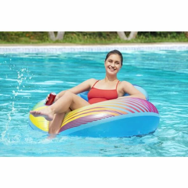 Daarnaast heeft de zwemring een bekerhouder en een comfortabele rugleuning en wordt geleverd inclusief .