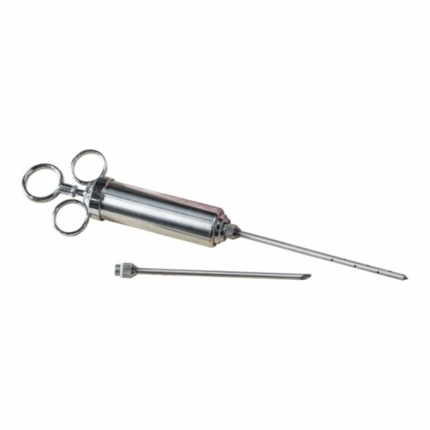 Deze CharBroil injector van roestvrij staal met een verwijderbare naald maakt het marineren van uw vlees snel en gemakkelijk door het vlees met smaak te verpompen. Pomp de marinade naar keuze direct in het stuk vlees, wacht en gril. De injector en naald zijn gemakkelijk schoon te maken.