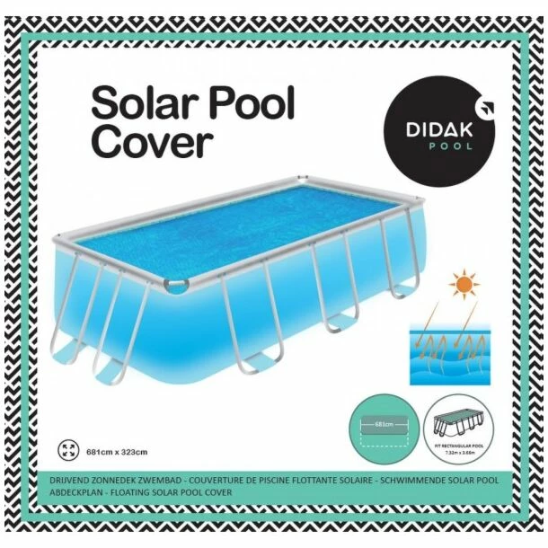 De cover is geschikt voor alle zwembaden met afmetingen 732 bij 366 cm. Ook kan de cover gebruikt worden voor rechthoekige zwembaden met kleinere afmetingen, omdat het folie makkelijk op maat te knippen/snijden is.