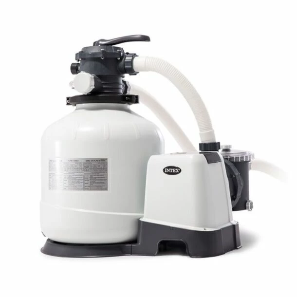 De zandfilterpompen van Intex kunnen gewoon op netstroom aangesloten worden en zijn zeer geschikt voor gebruik in combinatie met een zoutwatersysteem. Deze Intex Krystal Clear heeft een ingebouwde timer, manometer, voorfilter en een 6-wegkraan (filteren, terugspoelen, spoelen, circulatie, afvoer, sluiten) en is geschikt voor tot 40.000 liter (40 m³).