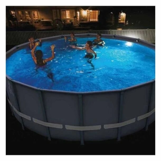 Deze Intex magnetische LED zwembadlamp zal je bovengrondse zwembad een uitstekende helderheid geven. De lamp maakt gebruik van magnetische technologie om een lichtsysteem te creëren dat veilige laagspanning genereert die door de zijwand van het zwembad naar de krachtige lamp gaat.