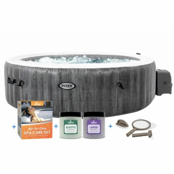 Intex brengt je een nieuw niveau van verwennerij met de nieuwe Intex PureSpa Bubble Deluxe Greywood 6 persoons hottub. Het verfijnde houtnerfpatroon voegt een tikje elegantie toe aan elke achtertuin.