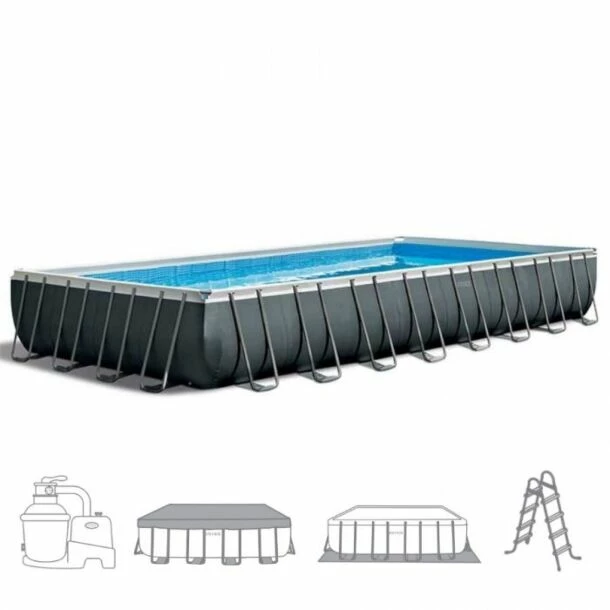 Maximaliseer je zwembad-ervaring met het grootste Intex Utra XTR Frame zwembad. Klassieke rechthoekige vorm, elegante donkergrijze voering met waterblauwe tegelprint maken overal een fashion statement. Voeg met deze luxe poool zomerplezier en schoonheid toe aan elke achtertuin! Het zwembad is eenvoudig te monteren, doordat de framecomponenten eenvoudig worden vastgeklikt zonder dat er borgpennen nodig zijn.