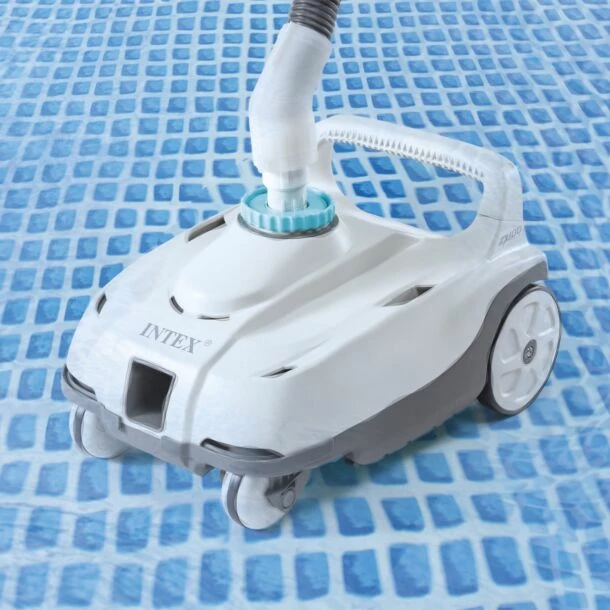 De Intex ZX100 automatische robot is een zwembadreiniger voor automatische reiniging van de zwembadbodem. De ZX100 verwijdert bladeren, gras, zand, insecten, algen en ander vuil.