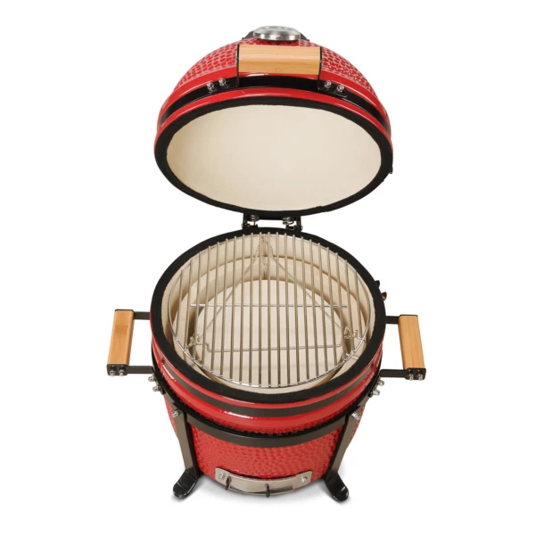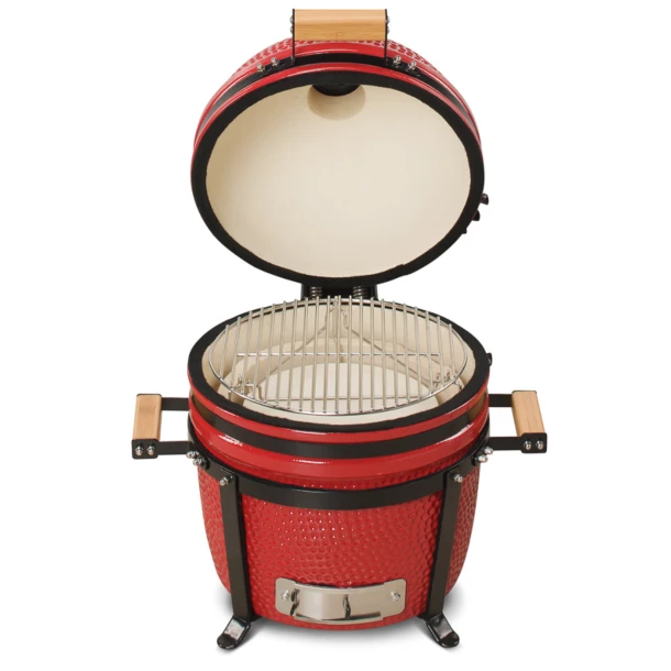 Een compact Kamado Bono grill model aanbevolen voor kleinere groepen (tot 5 personen). Perfect voor een picknick of voor gebruik op een terras of balkon. De basis grill set bestaat uit: keramische grill met standaard en twee handvatten, innovatieve glasvezel afdichting, zeer dikke warmteafleider, asverwijderaar, beschermhoes en roestvrijstalen grillrooster. Met de basis grillset kunt u: grillen op directe hitte (vlees aan spiesjes, steaks, burgers, kippenvleugels en andere gerechten gegrild onder 20 min.), Grillen op indirecte hitte (kip, ham, karbonades en andere gegrilde gerechten met behulp van een deflector), rook (ribben, kaas, draadjesvlees), maar ook soepen, pilaf en stoofschotels.