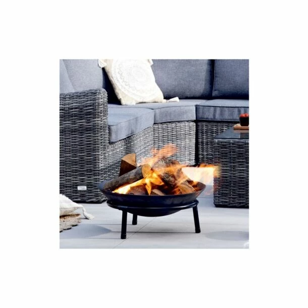 De vuurschaal heeft een stabiele basis en een grote kom waarin je genoeg hout kunt plaatsen om langere tijd te branden.